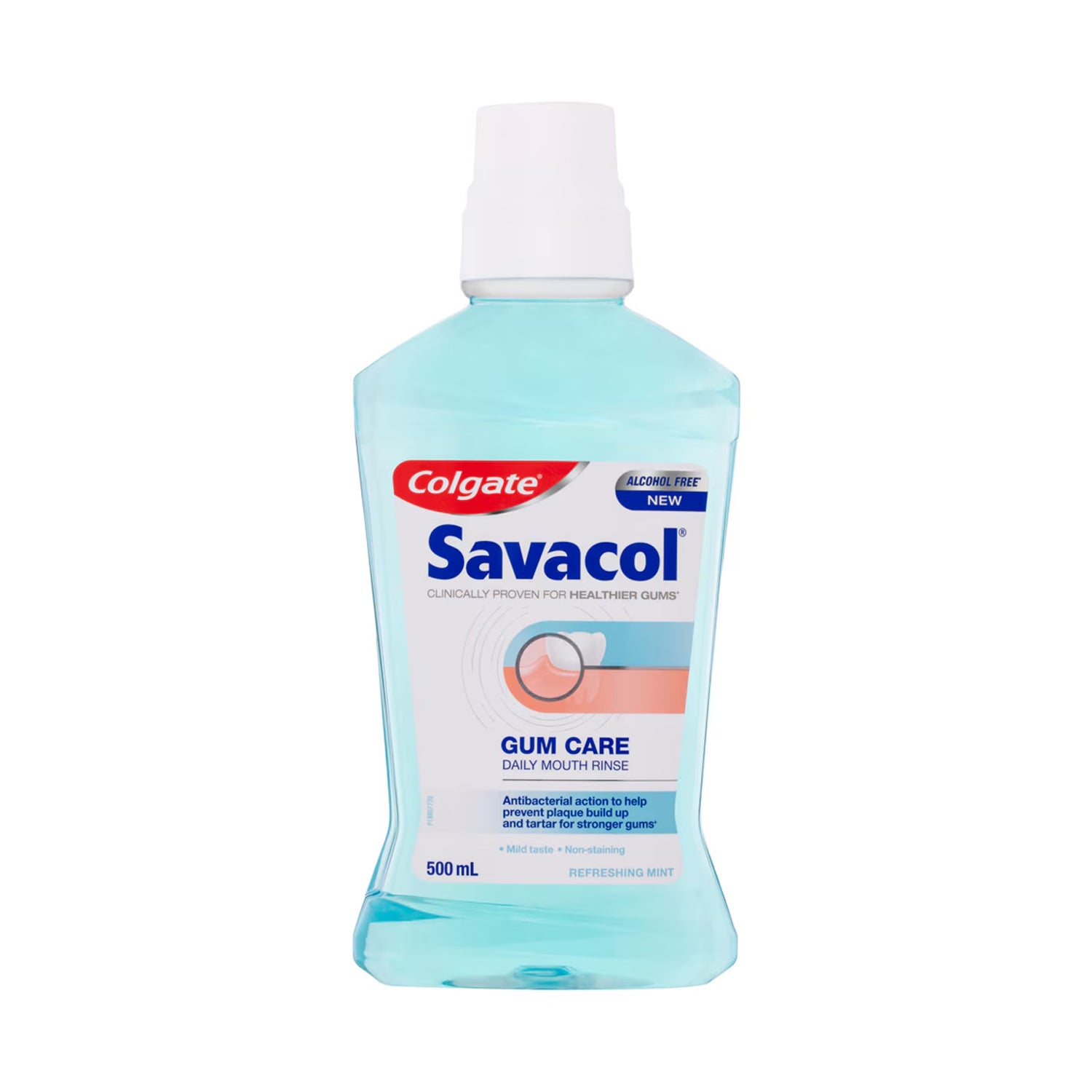 Colgate Savacol Gum Care mouthwash is clinically proven for healthier gums*. The specially designed formula actively fights bacteria in the mouth, helps reduce plaque to prevent tartar build up and freshens breath.